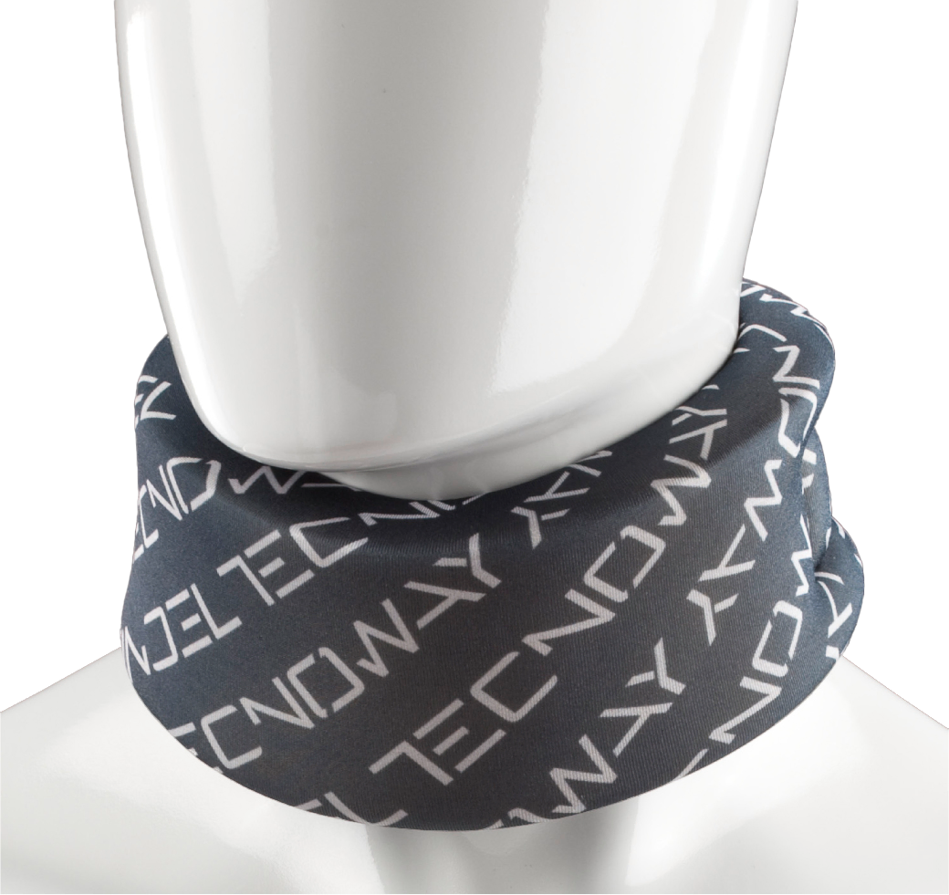 Struttura anatomica in gommapiuma semirigida rivestita in maglina tubolare elastica. Chiusura posteriore con cinturino a velcro. Radiotrasparente.